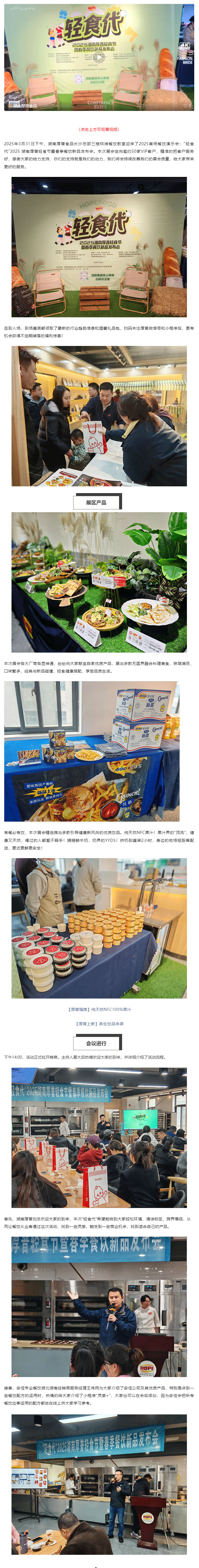 2025年3月31日下午,湖南厚普食品长沙总部三楼烘焙餐饮教室迎来了2025首场餐饮演示会:"轻食代"2025 湖南厚普轻食节暨春季餐饮新品发布会。本次展会定向邀约50家VIP客户,精准的把客户服务好,感谢大家的给力支持,你们的支持就是我们的动力,我们将会持续改善我们的展会质量,给大家带来更好的服务。